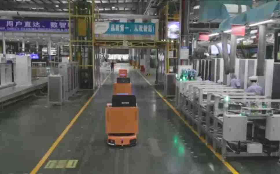 为车载冰箱物流配送打造的智能解决方案,,,包含产中物流通过潜伏举升AMR搬运至线边,,产后成品物流智能仓储,,流程包含产中物流智能齐套入库,,,线边安灯叫料AMR智能配送至线边,,,成品入库、、出库,,通过无人堆高车机器人,,,智能仓储管理替代人工作业管理,,,实现更高存储、、、更高效率、、更具柔性化的解决方案。。